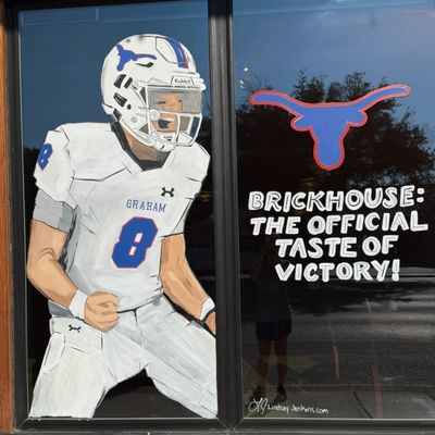 I provide promotional window painting, logo art, and custom storefront murals throughout Graham, Weatherford, Mineral Wells, Breckenridge, and the greater North Texas area.